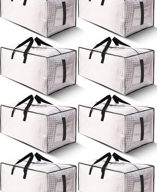 HOMESURE 8 Pack Large Strong Moving Bags with Zippers & Carrying Handles – Water-Resistant – Heavy Duty Storage Tote for Space Saving, Fold Flat, Alternative to Moving Box (Semi-Transparent)